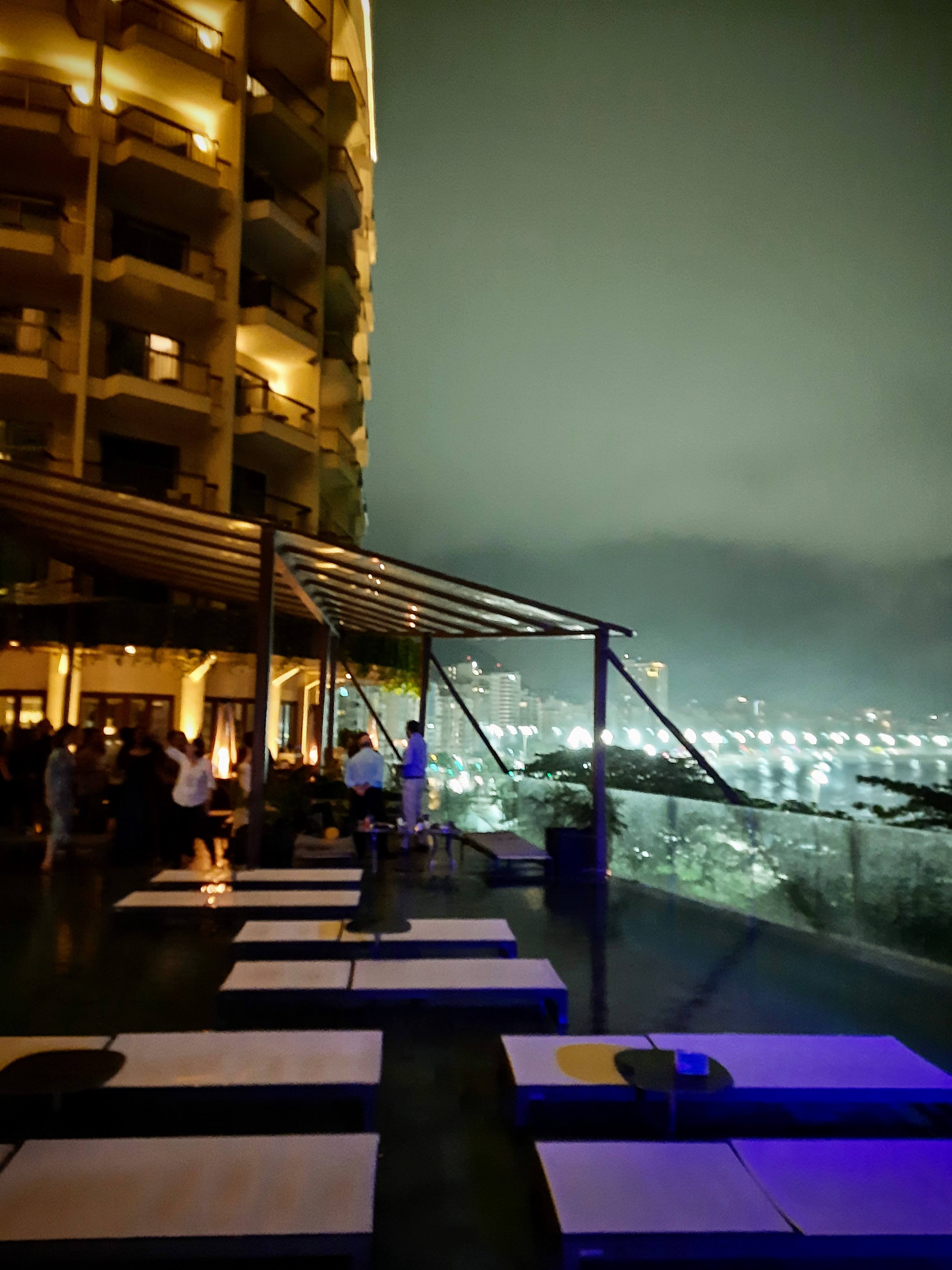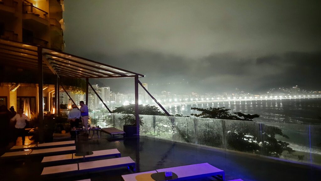 Copacabana, Rio de Janeiro: 29oC, hot, sunny, clear sky.
