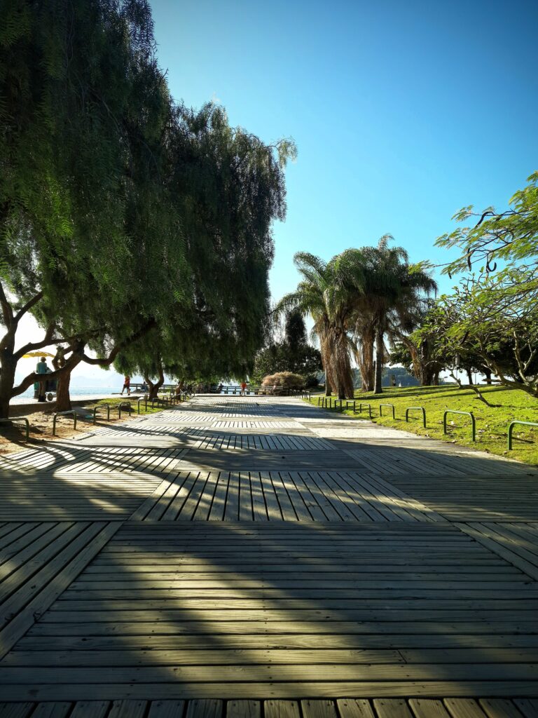 Sometimes, on the weekends, I prefer to take a round trip before arriving there instead of heading straight to the park for exercise. This way, I can take my time as it is Saturday, and I am not in a rush. I can also get some extra steps in on my pedometer. The round trip is about 3 kilometres long. I walk up to Largo do Machado, then down to the beach, and finally walk in front of the bay back to the park, which is on my way home.