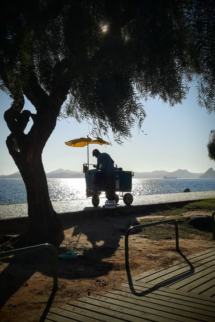 I woke up at 6:00 am and passed by the Portuguese bakery at 6:30 to pick up a takeaway coffee. I enjoy walking the streets early in the morning, sipping a good coffee, and admiring the views and the overall beauty of Rio, an extremely beautiful city.