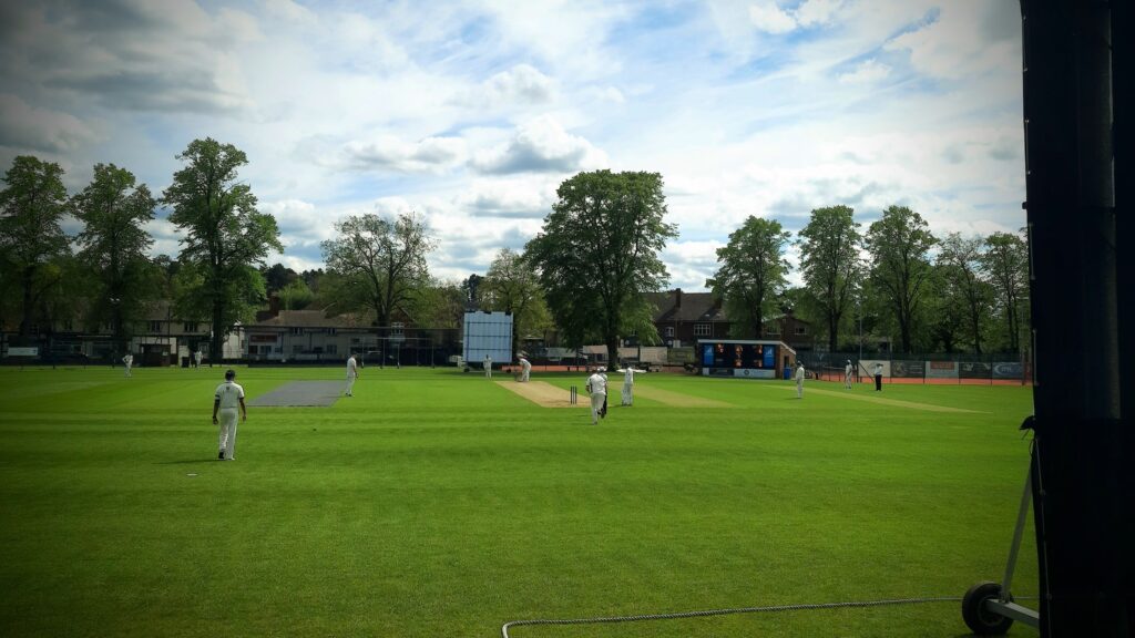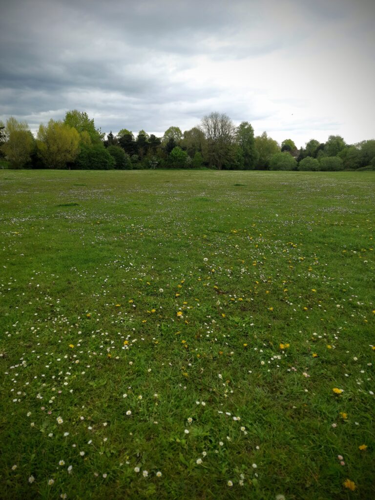 We followed them, and the street opened up at a kind of centre, a community sports centre and club. While Julie went to find the toilets, I wandered around the main building and, hidden at the back, came across a beautiful cricket field with cricketers preparing to play a match in their whites, which I thought was very endearing and English.