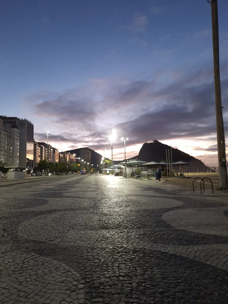 Copacabana, Rio de Janeiro: 25 °C, warm, sunny and slightly overcast.