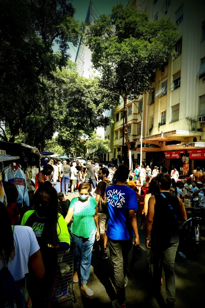 Copacabana, Rio de Janeiro: 25 °C, sunny and slightly overcast.