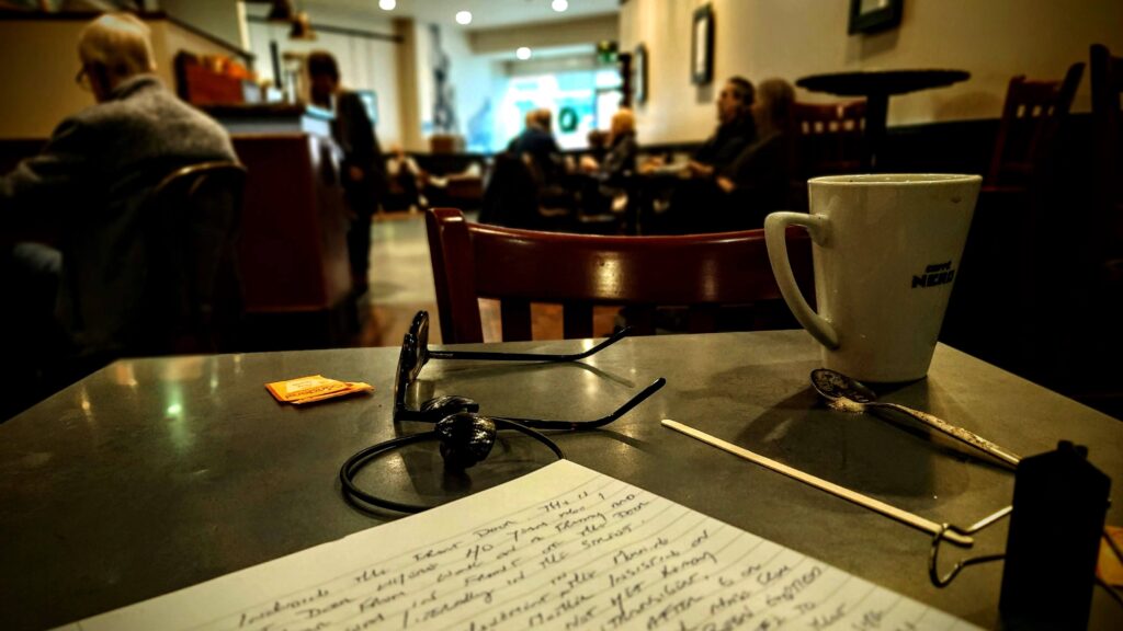 Whilst walking around in the High Street, I stopped at a quaint coffee shop for a coffee and to write. There was a couple who sat near me who had a beautiful and impressive traditional lurcher hunting dog, which I complimented.