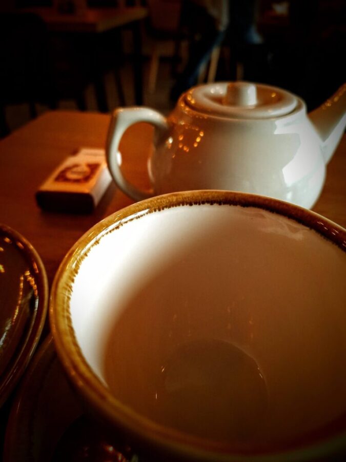 After walking back along the canal, I popped into my new local, the cafe on the green. I had a tea and a coffee, and shortly after, I was back home to begin the classes. Later, my mother cooked a very nice fish with parsley sauce.