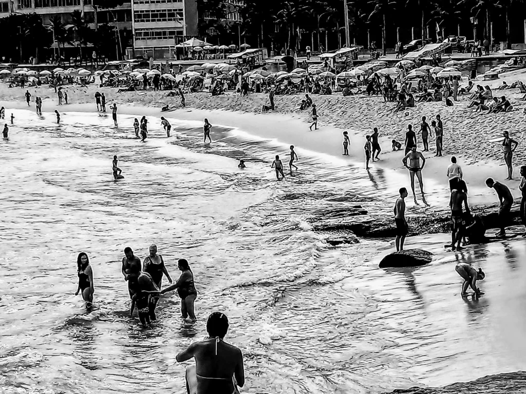 Copacabana, Rio de Janeiro: 28 °C, hot and a clear sky.