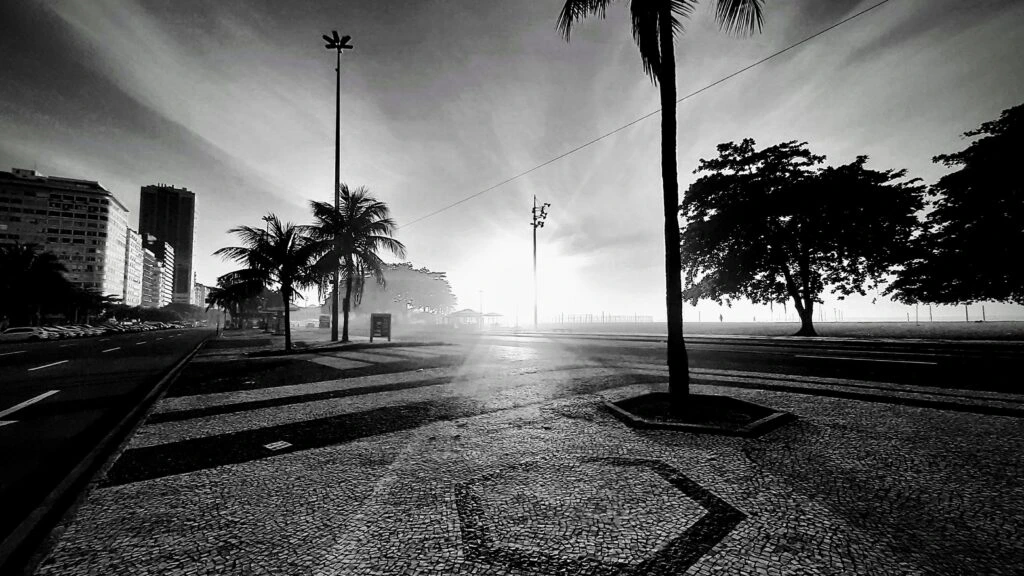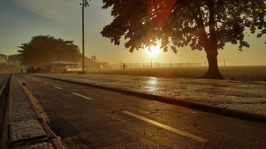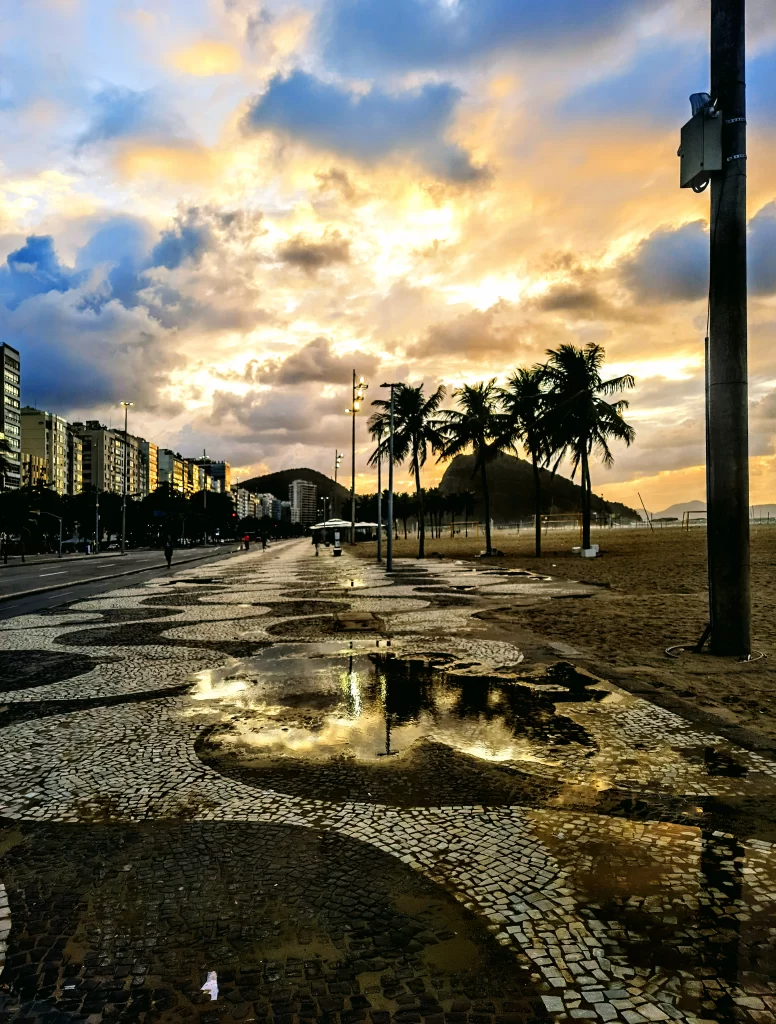 Copacabana, Rio de Janeiro: 25oC, hot and Sunny and slightly overcast.
